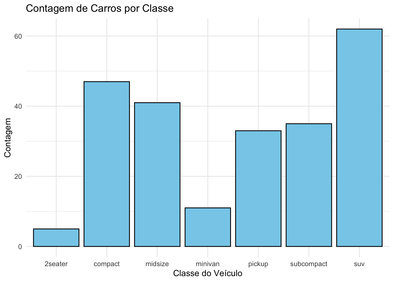 Usaremos o conjunto de dados mpg (já incluído no ggplot2), que contém informações sobre carros.