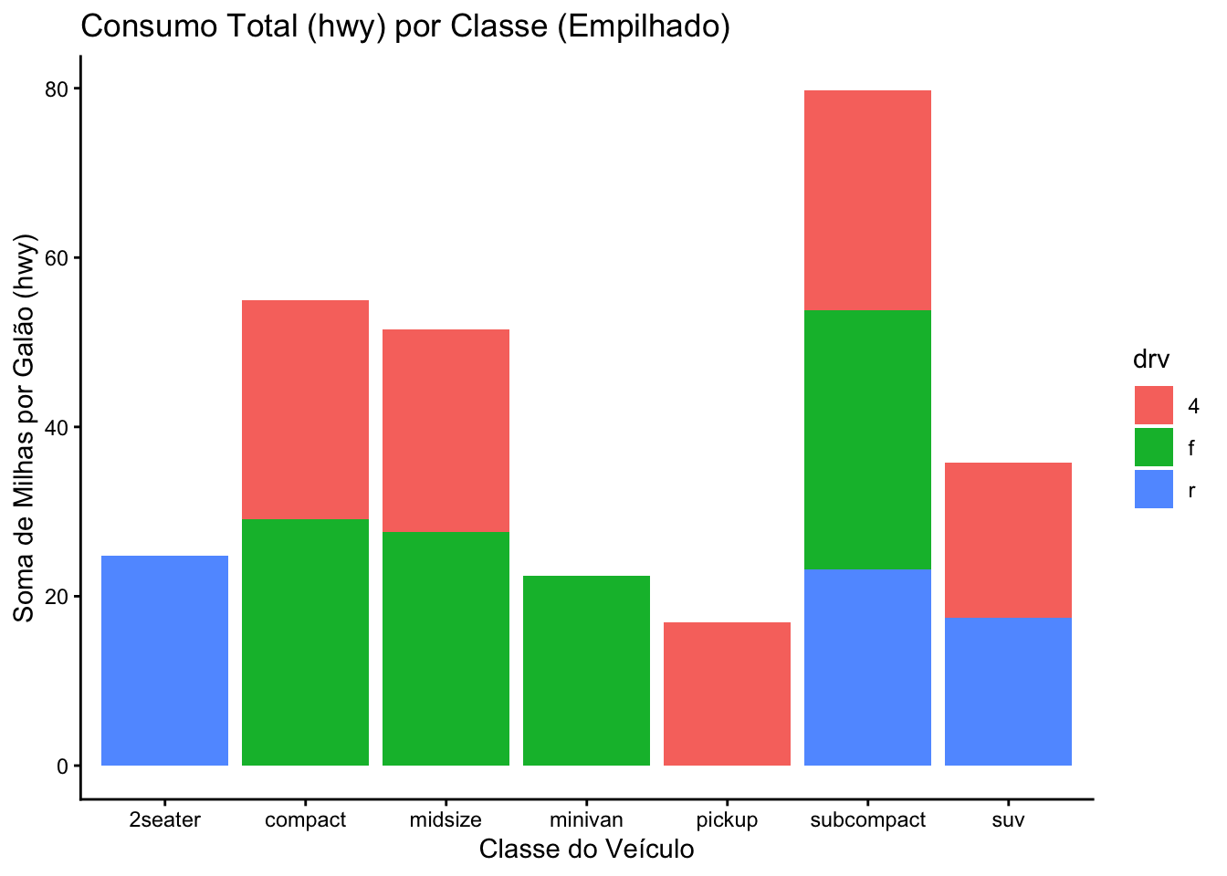 labs(title = "Consumo Total (hwy) por Classe (Empilhado)",