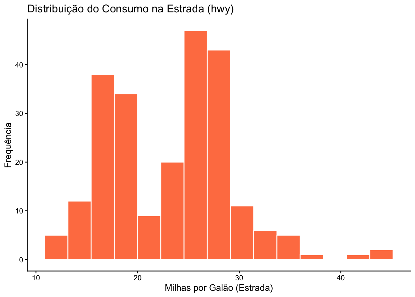 labs(title = "Distribuição do Consumo na Estrada (hwy)",