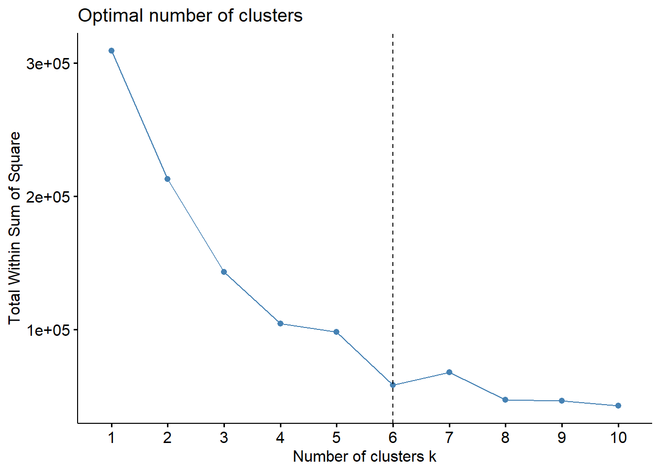 km.res <- kmeans(df, 6, nstart=25)