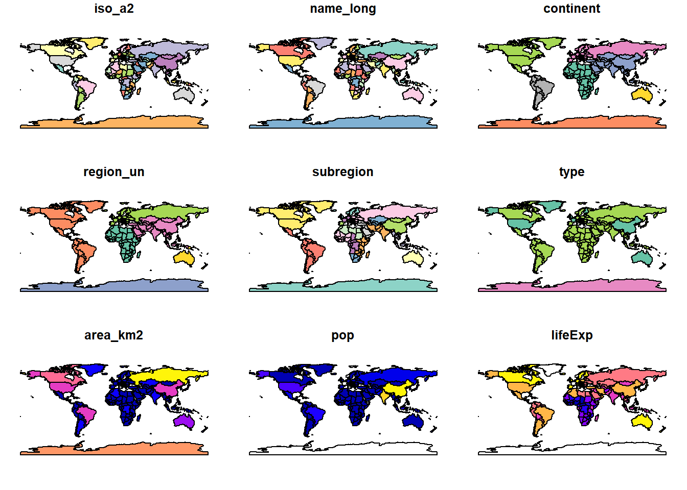 ## [7] "area_km2" "pop" "lifeExp" "gdpPercap" "geom"